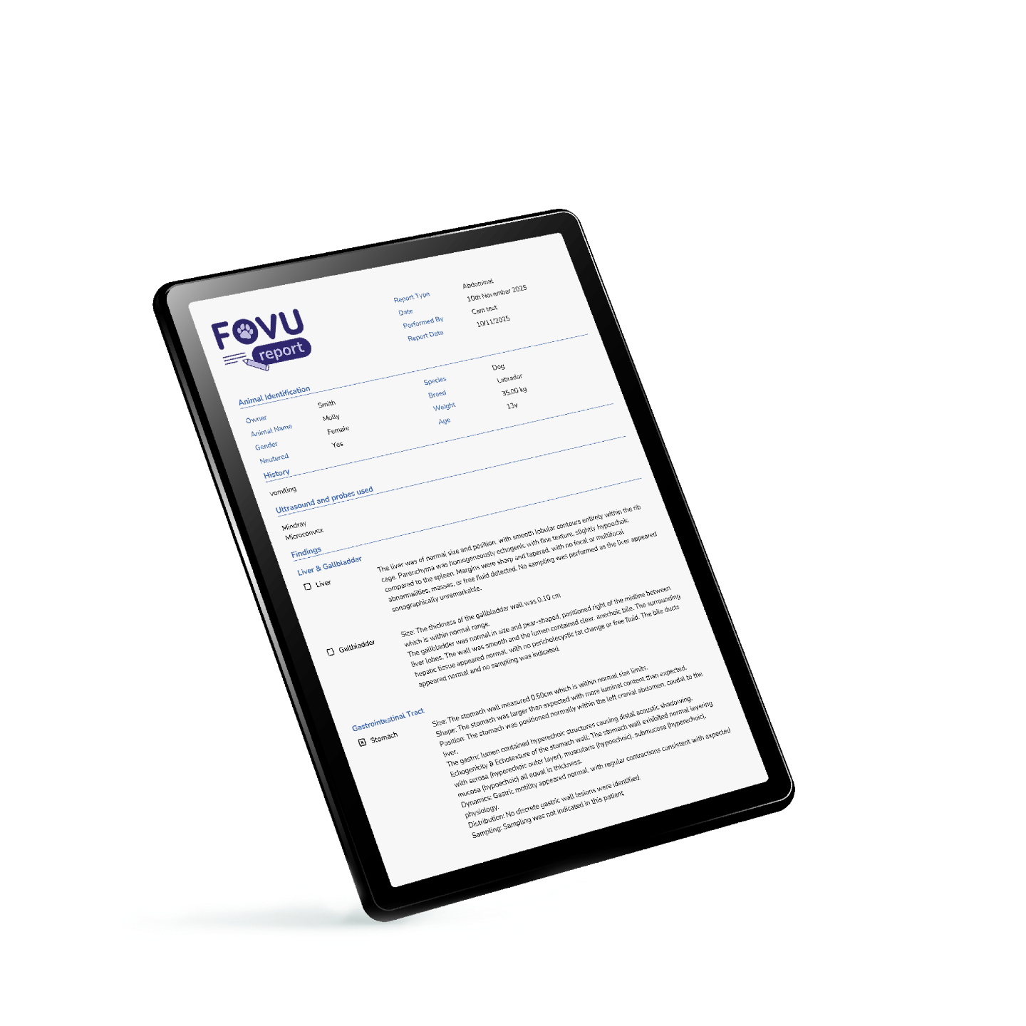 FOVU Report helps first-opinion vets write clear, structured ultrasound reports