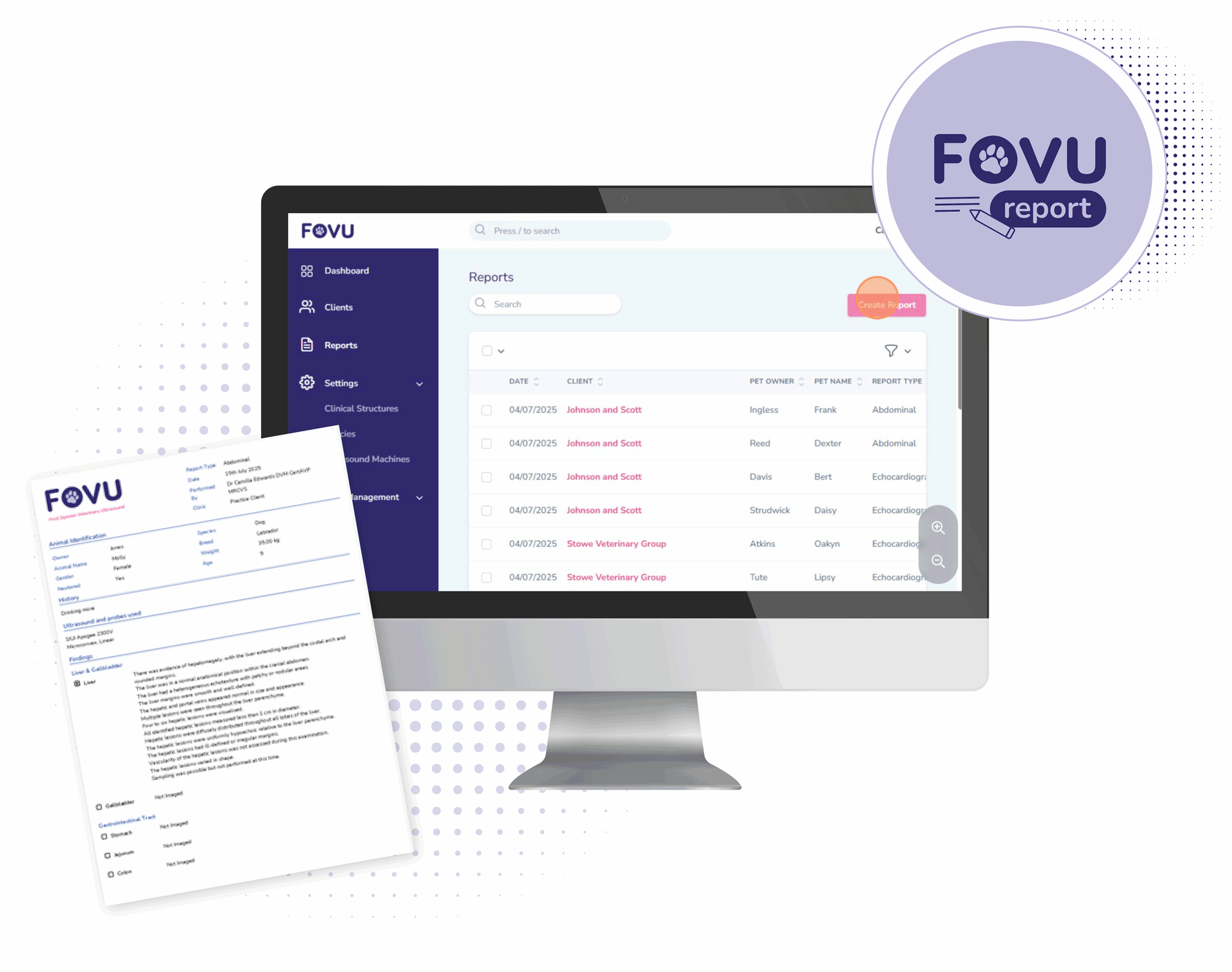FOVU Report helps first-opinion vets write clear, structured ultrasound reports — faster, with more confidence, and less second-guessing.